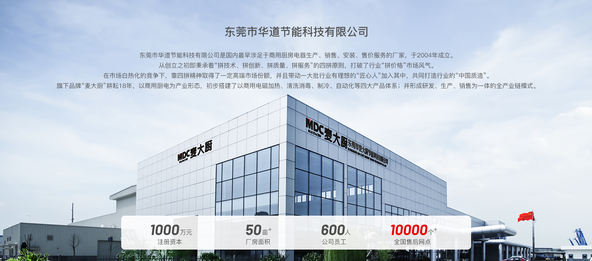 東莞市華道節(jié)能科技有限公司是國內(nèi)最早涉足于商用廚房電器生產(chǎn)、銷售、安裝、售價服務(wù)的廠家,于2004年成立。 從創(chuàng)立之初即秉承著“拼技術(shù)、拼創(chuàng)新、拼質(zhì)量、拼服務(wù)”的四拼原則,打破了行業(yè)“拼價格”市場風氣,在市場白熱化的競爭下,靠四拼精神取得了一定高端市場份額 并且?guī)右淮笈袠I(yè)有理想的“匠心人”加入其中,共同打造行業(yè)的“中國質(zhì)造”。